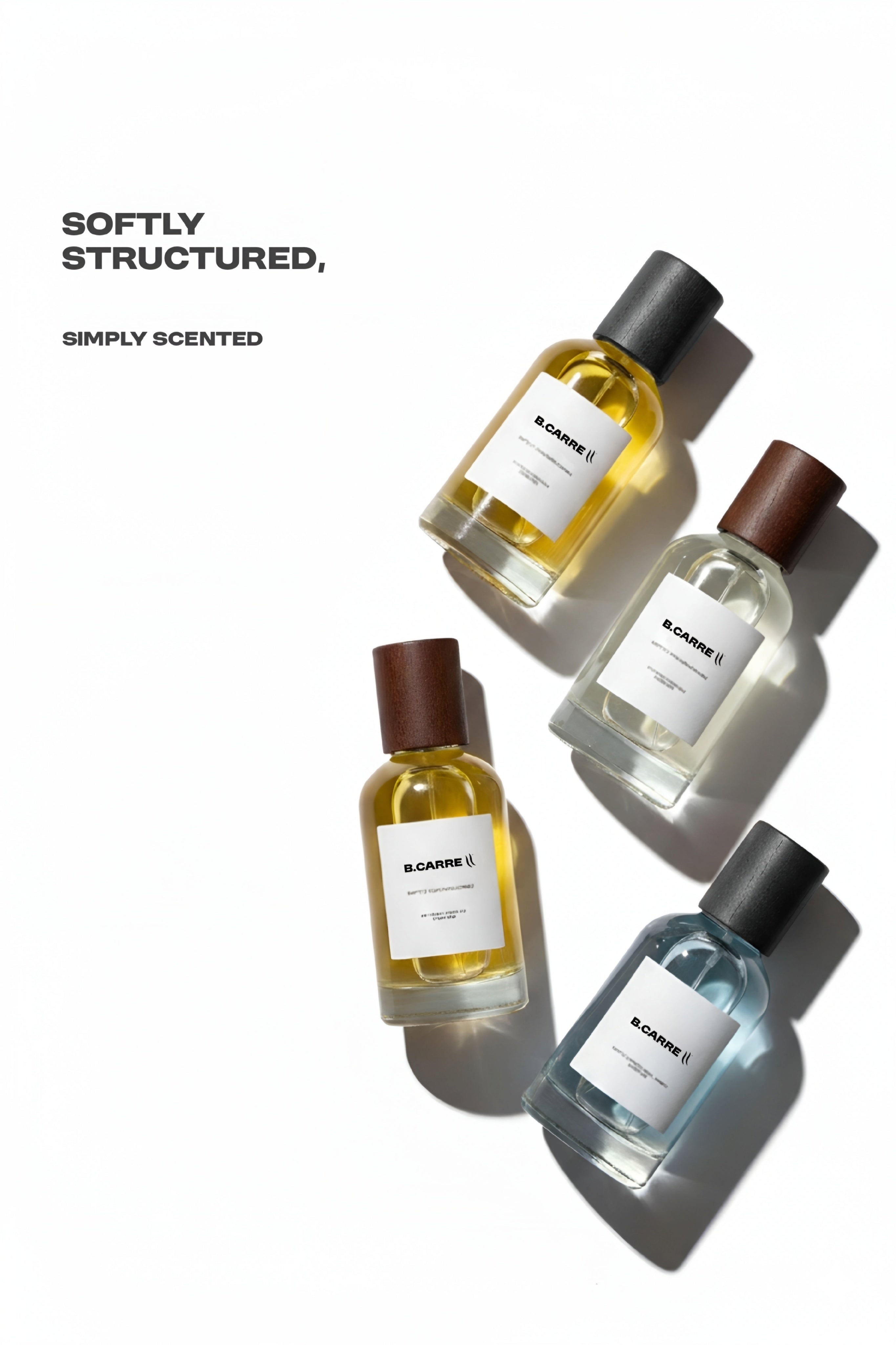 B-CARRE’s men’s parfum blends fresh, woody, and warm notes for a bold yet refined style. A touch of everyday confidence in every spray.
